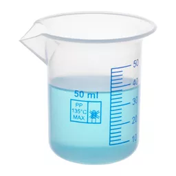 Polypropylene, beakers with screen printed blue graduations.