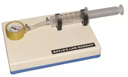 Economical apparatus to demonstrate the relationship between the pressure and volume at constant temperature. A 50 ml plastic syringe is connected to a pressure gauge with a connecting tube to measure the pressure. Mounted on a plastic base.