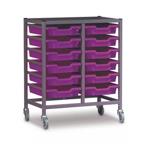 GRATNELLS DOUBLE STORAGE TROLLEY WITH 12 PURPLE SHALLOW TRAYS