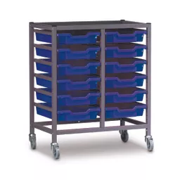 GRATNELLS DOUBLE STORAGE TROLLEY WITH 12 BLUE SHALLOW TRAYS